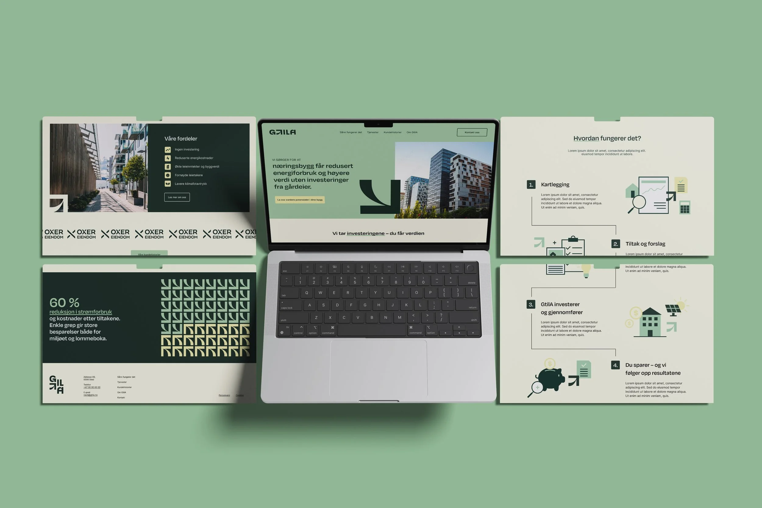 GtilA hjelper eiendomseiere og bedrifter med å finne smarte energitiltak og løsninger som kan redusere energibruk og kostnader i bygninger. De jobber med analyser, kartlegging og forslag til tiltak som gir gode resultater for både miljøet og lommeboka. Qvitre har utviklet nettside og designet visuell profil for dem.